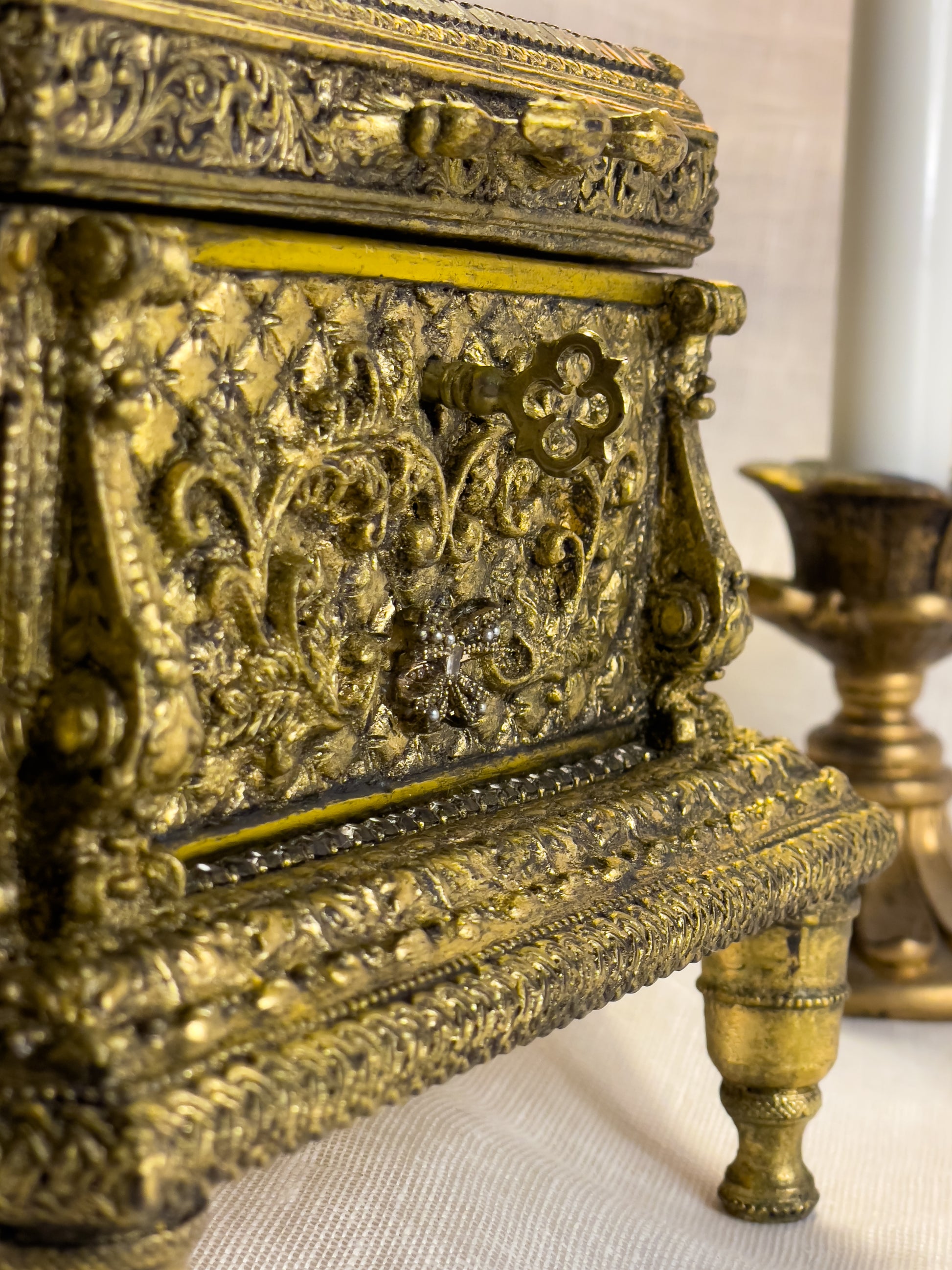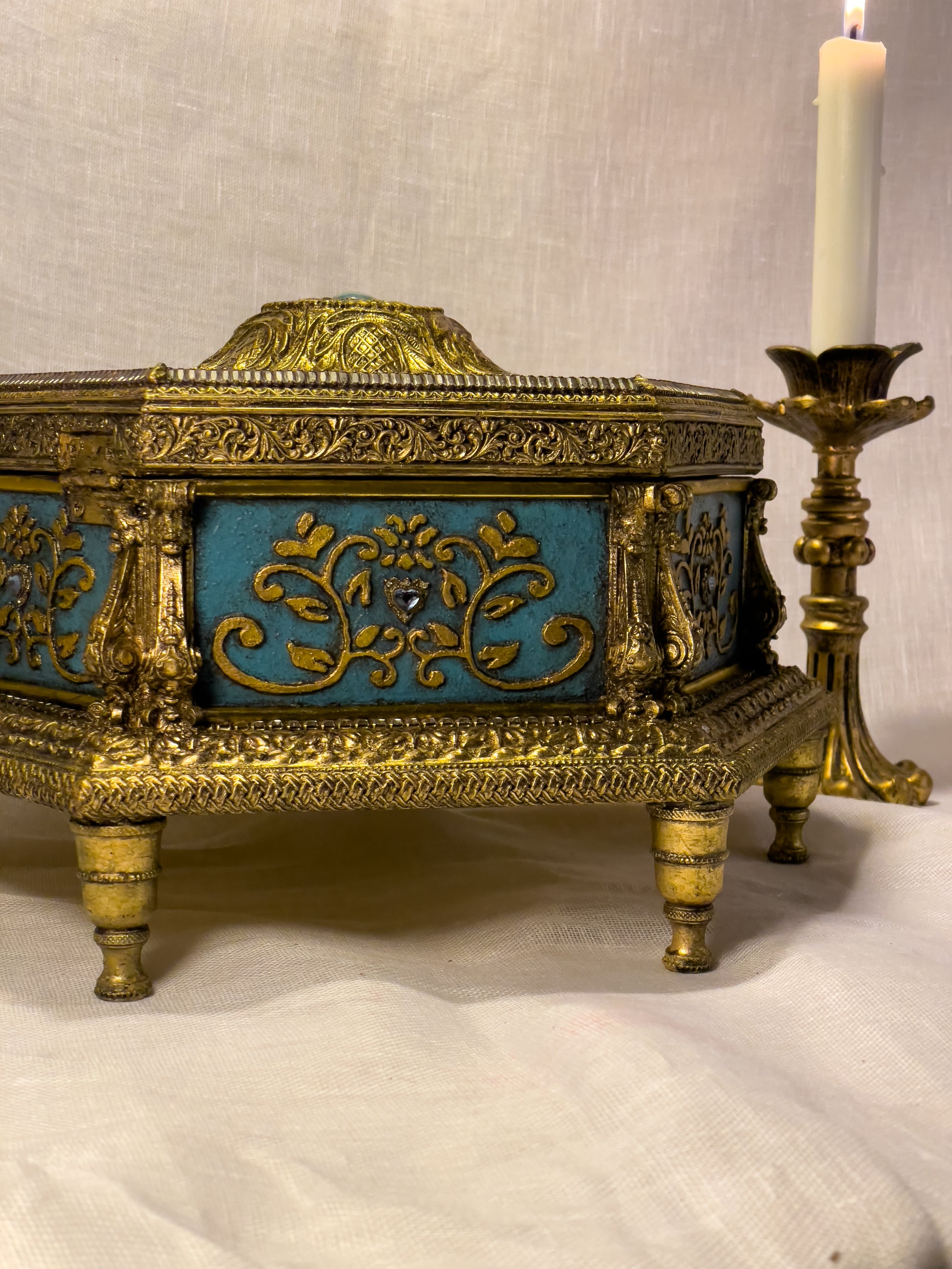 Les bijoux visibles sur les images servent uniquement à la mise en scène. La boîte est vendue seule.